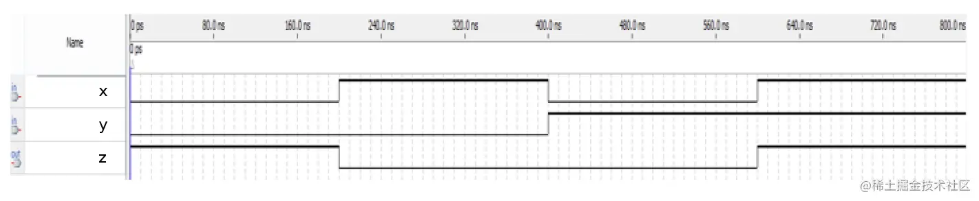 思路: 分析一下时序图可以看出是一个同或门的时序,不过同或没有符号表示,所以需要实验异或的非