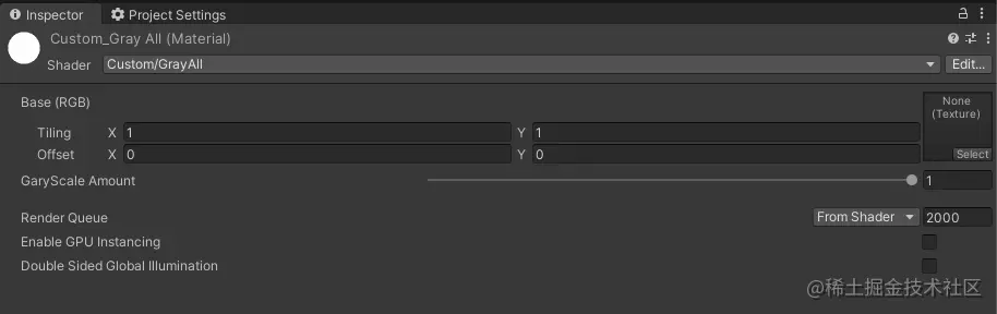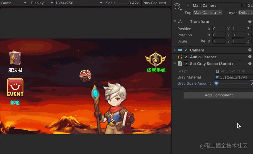 运行游戏,调整grayScaleAmount值即可看到效果。
