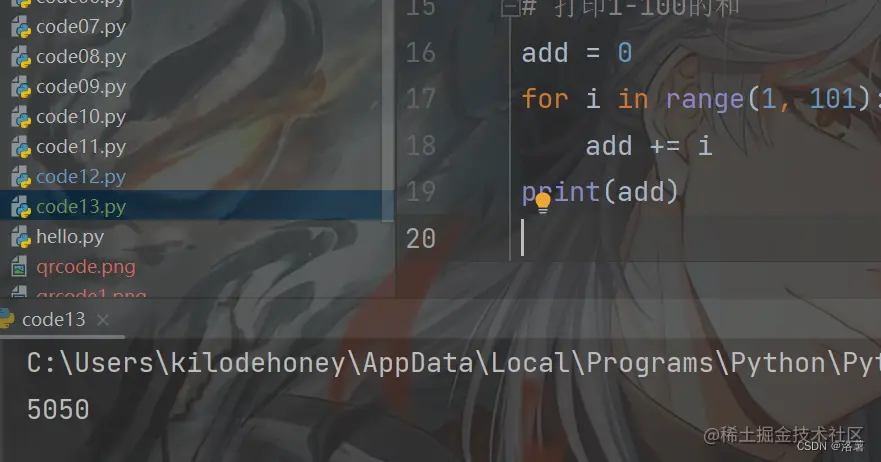 步长可以是负数 4.求1-100的和