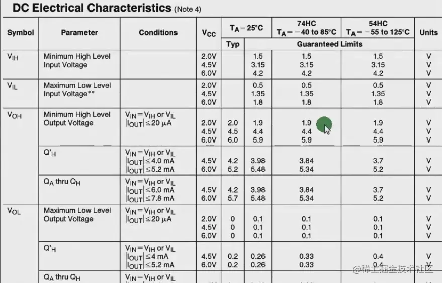 VIL最大低电平电压,VCC为4.5V,低电平最大电压不能超过1.35V,超过就不认为是低电平。
