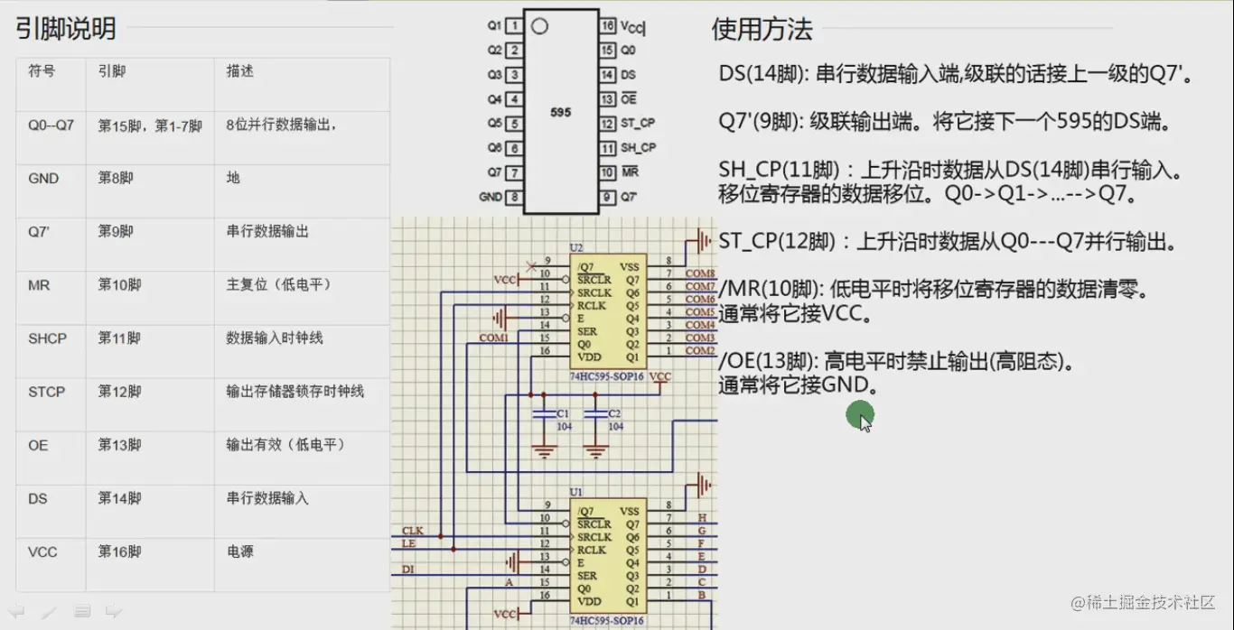 比较重要,这一块学懂了,那么595芯片也就彻底懂了,使用方法懂了,编程也就不会有问题了。