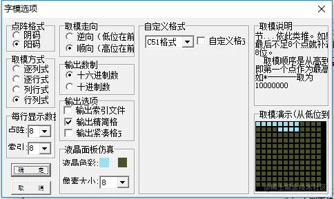 - 点阵屏上面引脚是列,高有效,从左到右是1~8列,下面引脚是行,低有效,从左到右是1~8行。即共阴极点阵屏。