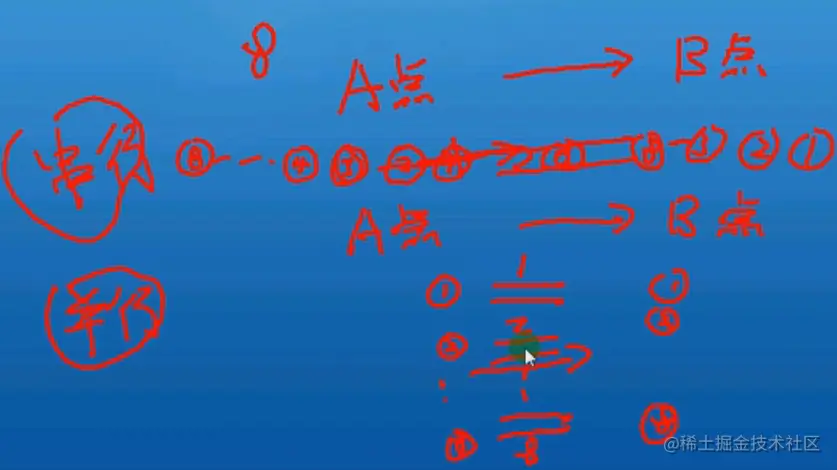 例如有1个数据,1个字节的8位数据,要从A传送到B点,如果是串行,串行只有一个数据通道,这8位要想从A到B只能从这一个通道过去,那么它一次只能走一个,比如第一次过去一个1,1完了后,2又过去,以此类推,8次。如果是8位并行,他就有8个通道,8个数据就可以一次传过去