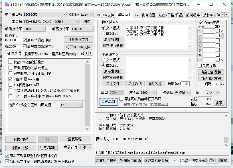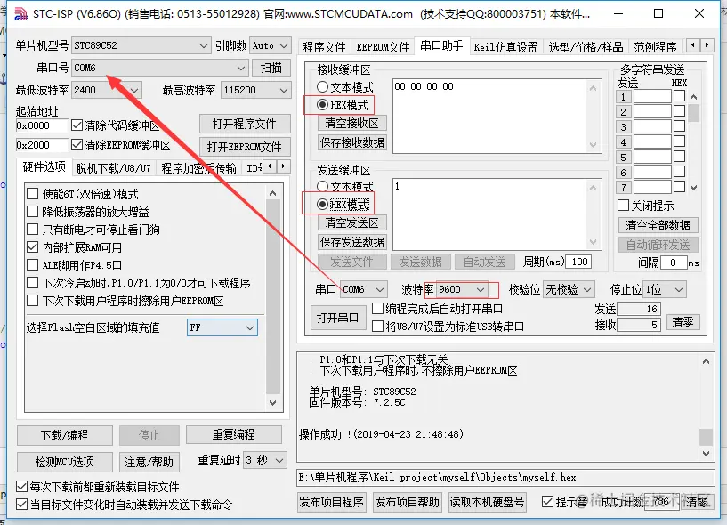 发16进制的数字。刚打开串口时,会接收到别的数,没关系,下载也是通过串口的。