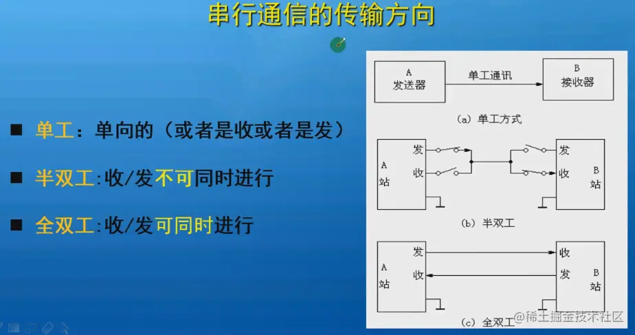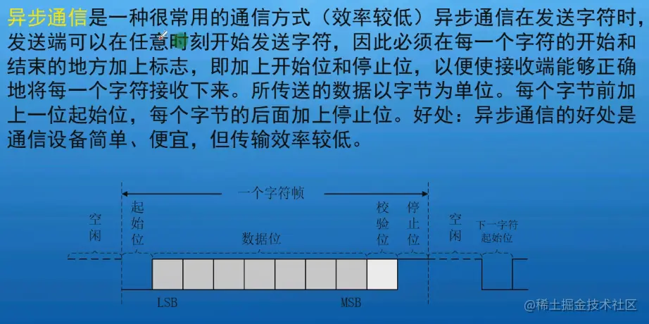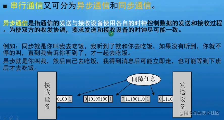 我们的串口是异步通信,后面的I²C和SPI是同步。