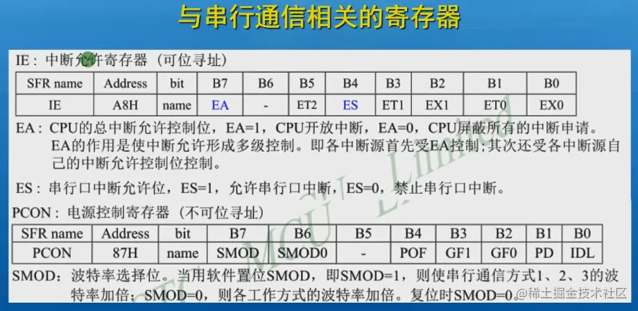 SCON是串口工作方式选择。