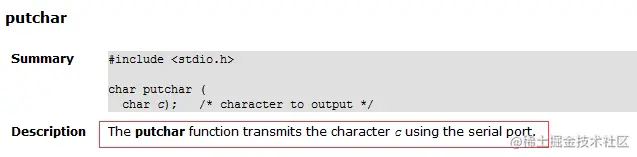 putchar()函数就是把字符c发送到串口。