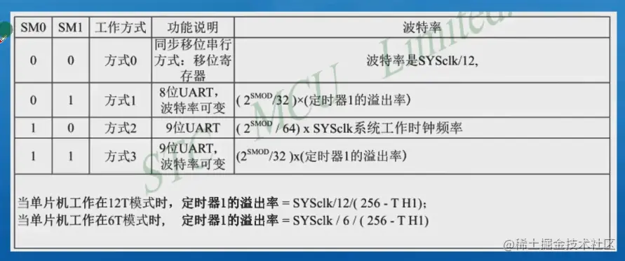 方式0的波特率时系统时钟的12分频。SMOD是波特率倍增位。