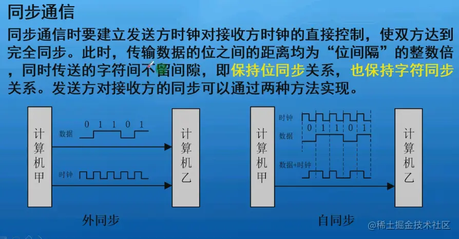 自同步,双方约定好时钟是相同的,来一个时钟发一个数据,另一边接收一个数据,外同步是使用最多的,开发板上还有一些,像I²C设备的数模转换芯片,E²PROM芯片,都是用的同步通信的外同步。