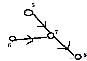 最后!!我们把容器中的点5,6删除,加入入度为0的点7,再取出点7,删除点8的一个入度。