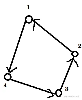 从上面的环图中可以看出,如果每个点都代表一个事件,倘若现在要做 事件1,那我们就要先完成 事件1的前置事件2,要完成事件2,我们就要先完成 事件3才行 ,要做事件3, 就要先完成事件4,要做事件4就要完成事件1,