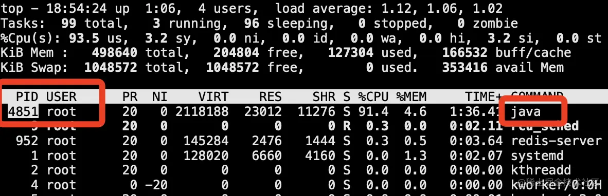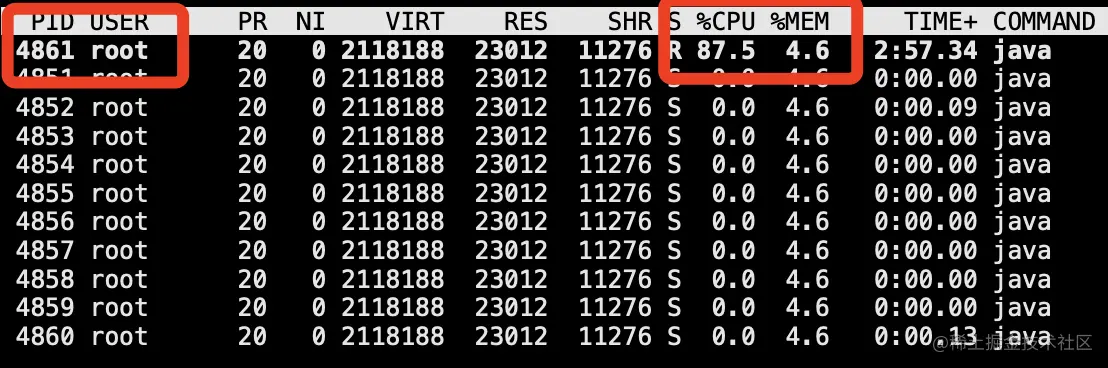 2.根据pid 找到对应cpu占用最多的Java进程。