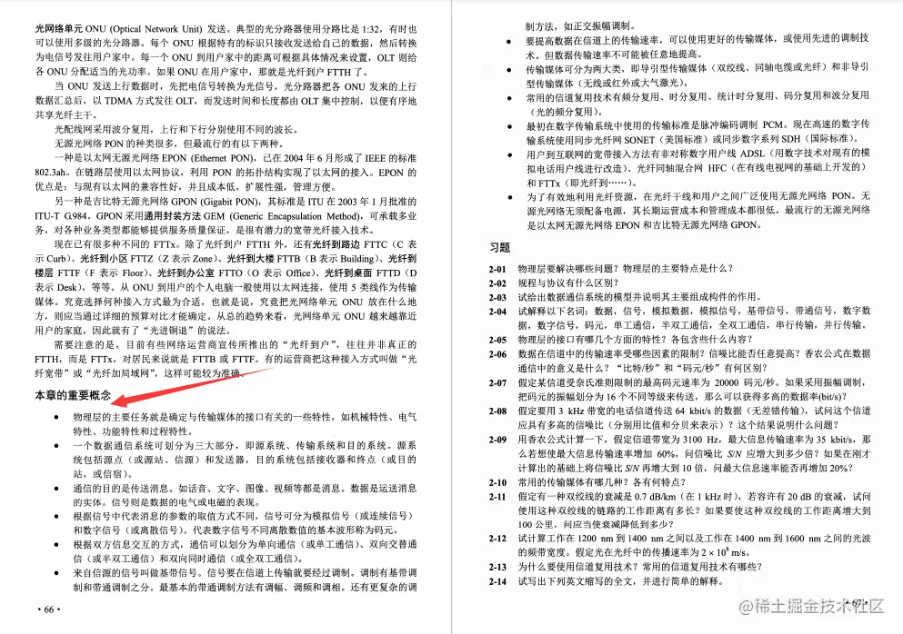 本章首先讨论物理层的基本概念。然后介绍有关数据通信的重要概念,以及各种传输媒体的主要特点,但传输媒体本身并不属于物理层的范围。在讨论几种常用的信道复用技术后,对数字传输系统进行简单介绍。最后再讨论几种常用的宽带接入技术。