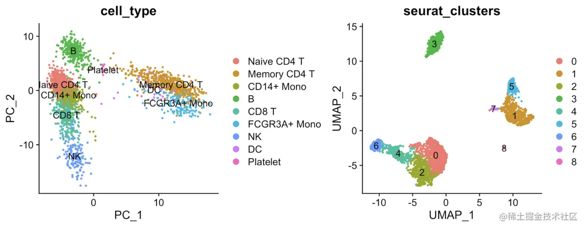 p1 <- DimPlot(pbmc, reduction = 'pca', group.by = "cell_type", label=T)
