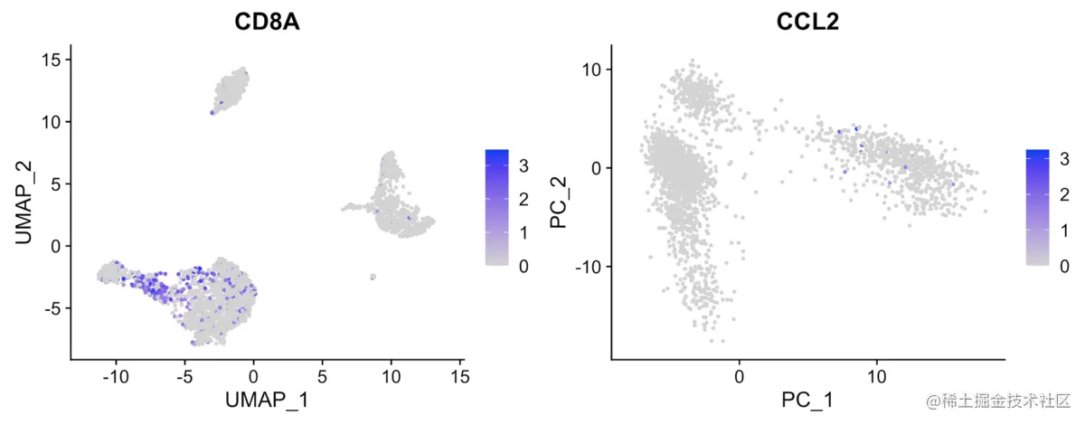 p2 <- FeaturePlot(pbmc,features = "CCL2", reduction = 'pca')