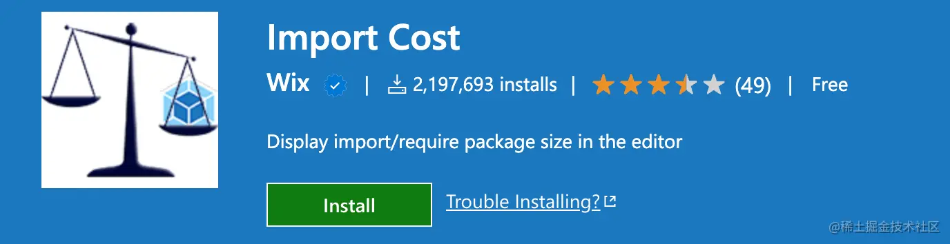 在前端项目中,我们经常需要导入各类的依赖包,通过 Import Cost 可以查看导入包的大小,便于优化。
