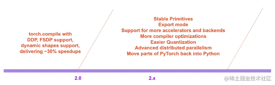 在 PyTorch 2.x 的规划中,我们希望在性能和可扩展性方面将编译模式(compiled mode)推得越来越远。正如我们在今天的大会上所谈到的,其中一些工作正在进行中,有些工作还没有开始,有些工作是我们希望看到的,但我们自己没有足够的精力来做。如果你有兴趣做出贡献,请在本月开始的 "Ask the Engineers: 2.0 Live Q&A Series"现场问答系列中与我们交谈(详情见本帖末尾),或者通过 Github/论坛。