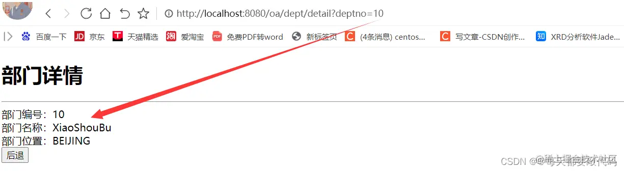 所以也需要把dpetno传过去,点击哪个deptno号就查询哪个部门,然后才能进行修改
