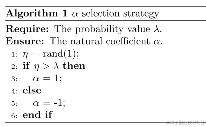 在式(1)中,为参数k和b选择合适的值是至关重要的。α模拟了自然因素(如风和不平坦的地面)可以使蜣螂偏离它们原来的方向,具体来说,α=1代表没有偏离,α=−1代表偏离原来方向。α的取值根据概率方法确定的以模拟复杂的环境,见下面的算法。类似的,Δx越大表示光源越弱,其能带来两个好处:1)在优化过程中,尽可能彻底地探索整个问题空间;2)执行更强的搜索性能,降低陷入局部最优的可能性。