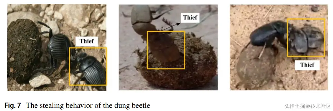 有一些蜣螂,被称为小偷,会从其他蜣螂那里偷粪球,如下图。