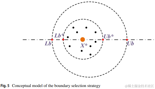 为了给它们的后代提供一个安全的环境,选择合适的产卵地点对蜣螂来说至关重要。受上述讨论的启发,作者提出了一种边界选择策略来模拟雌性蜣螂产卵的区域,定义如下:
