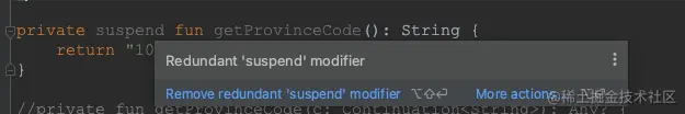 上面的函数删除了delay(1000L)只有suspend成了灰色并且提示信息:suspend是多余的, 用两段代码做个对比