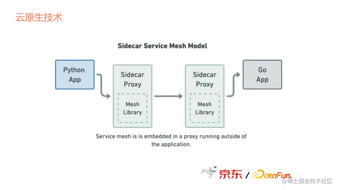 再看Service Mesh,它通过Sidecar的方式去提供容器间通信,但这个通信有成本,因为它本来是两个app之间的通信,变成了要通过sidecar去跳,那么这个跳就意味着通信成本的增加,所以也不是很好的选择。因此,我们现在并没有直接使Service Mesh来管理容器间的通信。