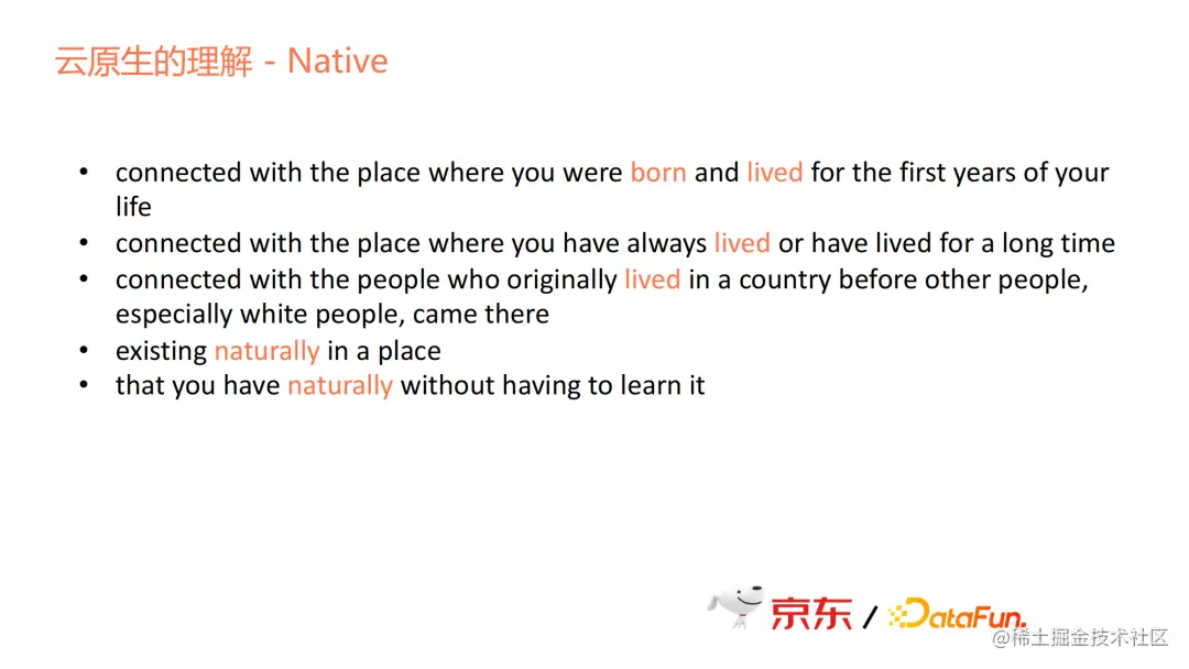 我们今天所讨论的云原生是大数据范畴内的云原生。云原生可以分为云和原生两部分。