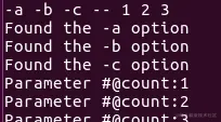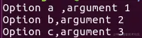 例如,getopt -o ab:c::中,将解析为:-a -b arg_b -c [arg_c],arg_b是-b选项必须的,arg_c是-c选项可选的参数,"-a"选项无需参数