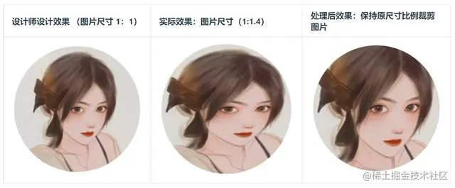 我们预想的是用户按1:1的大小来上传头像图片,但实际用户上传的头像比例是五花八门,就会造成图片被拉伸或挤压变形。我们可以添加Object-fit:cover来等比例裁剪图片尺寸,这样图片就不会被拉伸或压缩,不过会有一部分图片被裁剪掉。