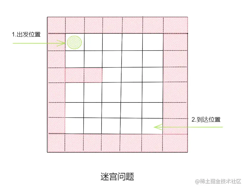 需求:使用递归的方式,让小球到达目标位置。