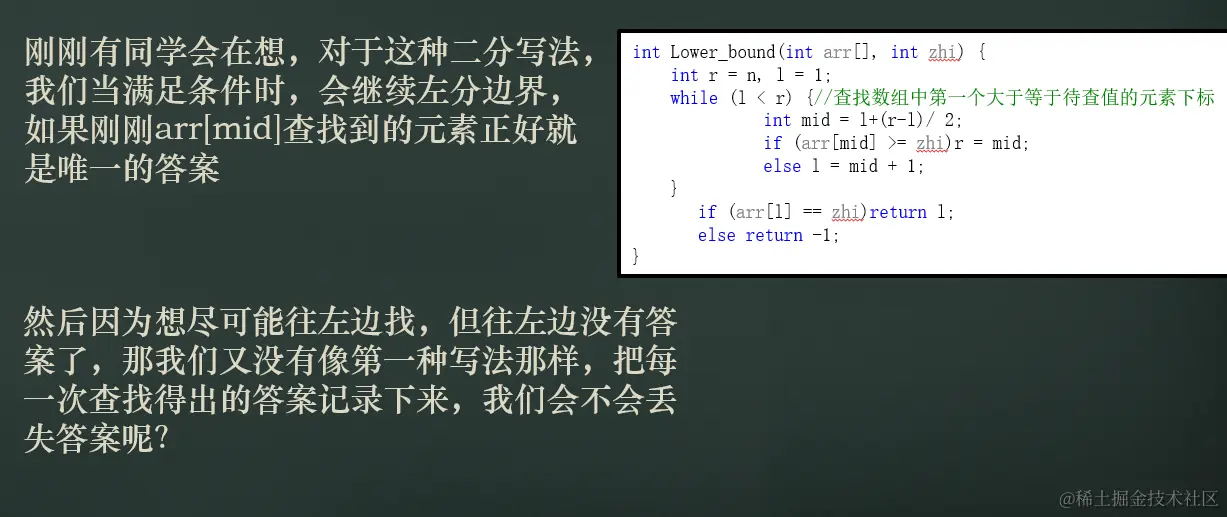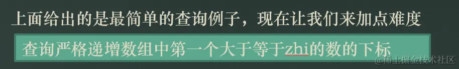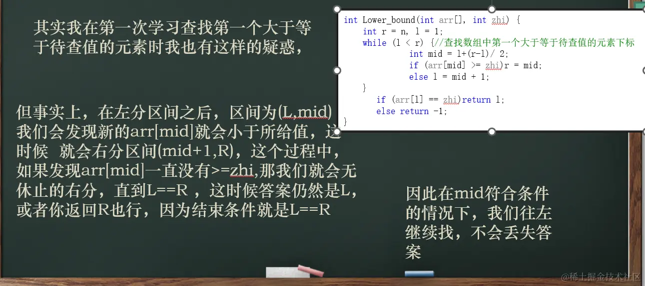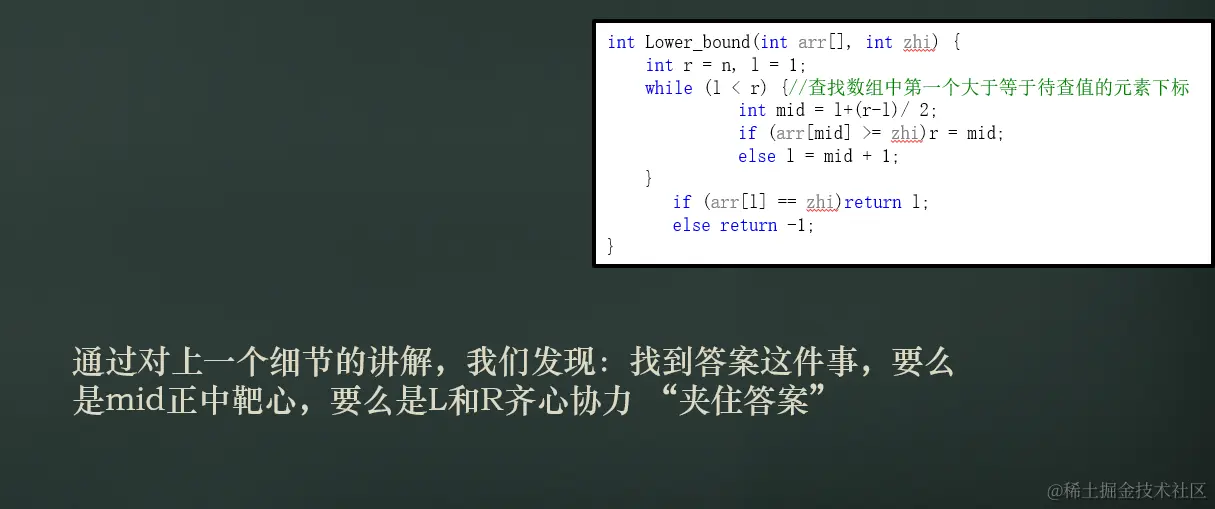 while (l < r) {//查找数组中第一个大于等于待查值的元素下标