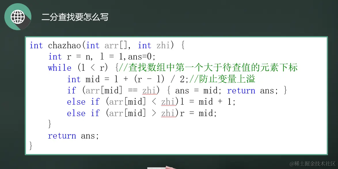if (arr[mid] == zhi) { ans = mid; return ans; }