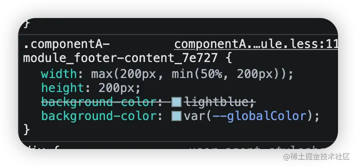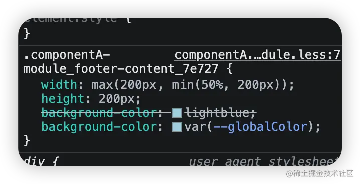 这样就会加上这样一句了,即使在低版本浏览器也可以保持运行了。为什么会出现这样的情况呢,这是因为vite在解析的时候是一个一个文件的解析的,在解析完了 varible.css 他就什么都不做了,然后又去解析 componen.module.less,但是由于之前的全局变量都没有保存下来,所以就会出现上面的那种情况,我们只需要写一个配置就可以改变了。