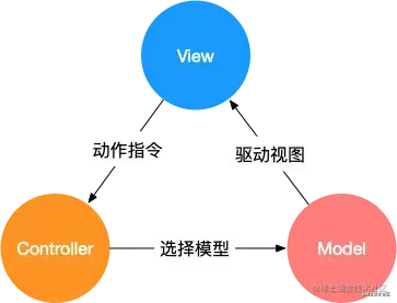 MVC 通过分离 Model、View 和 Controller 的方式来组织代码结构。其中 View 负责页面的显示逻辑,Model 负责存储页面的业务数据,以及对相应数据的操作。并且 View 和 Model 应用了观察者模式,当 Model 层发生改变的时候它会通知有关 View 层更新页面。Controller 层是 View 层和 Model 层的纽带,它主要负责用户与应用的响应操作,当用户与页面产生交互的时候,Controller 中的事件触发器就开始工作了,通过调用 Model 层,来完成对 Model 的修改,然后 Model 层再去通知 View 层更新。
