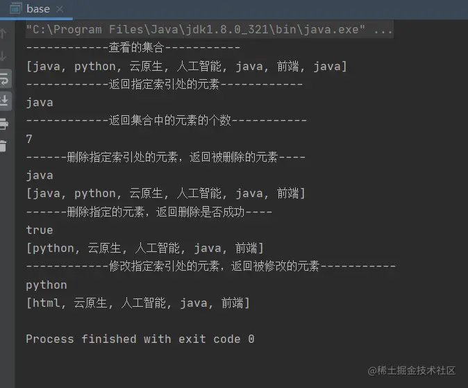 System.out.println("------删除指定索引处的元素,返回被删除的元素----");