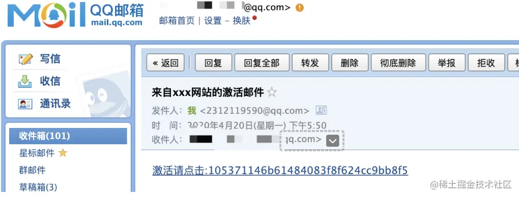 并且邮箱中也收到了一封激活邮件。