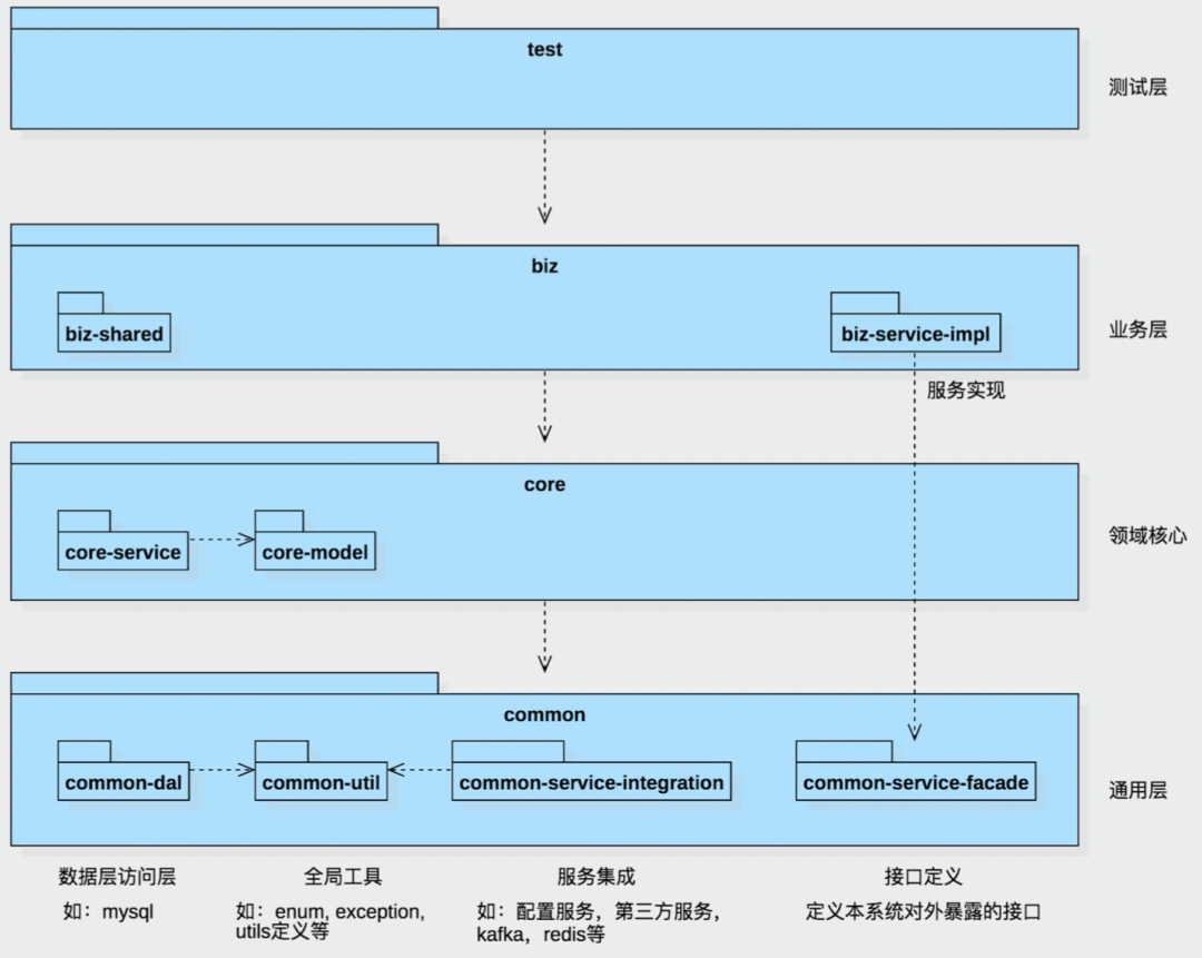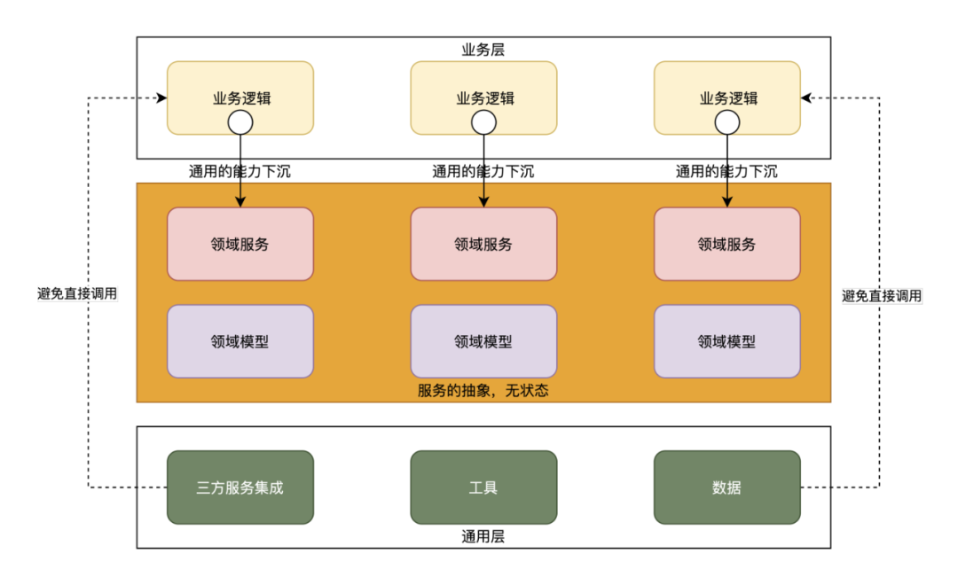 我们需要准确把握各层的设计初衷,归纳起来讲就是:将业务实现与数据接耦,通过在 core 层做抽奖(core service & core model),将通用的服务能力下沉。避免在业务层直接调用数据层服务,从而有过多的耦合让服务「不够通用」,是「定制化的实现」,这不是一个好的业务系统所期望的结果。