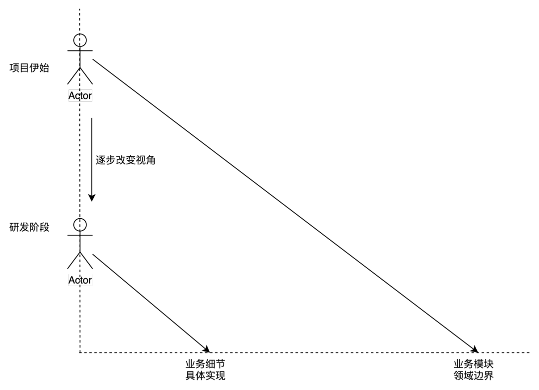 在业务的调研阶段,我们先不关注业务具体的实现细节,否则我们很容易在一开始就进入了「点状思维」。借用一句诗,是这么说的:横看成岭侧成峰,远近高低各不同。在项目伊始,我们需要有全局观,把当下的业务想清楚,抽出主线「Domain Model」,往往这个核心的模型是整个项目的精髓所在,把握好了这个会让我们会很有底气和信心面对未来复杂而多变的新增业务场景。当然,也需要把未来的业务思考一下,看看当前的业务和未来的业务是否能在这个主线中很好得串联起来。