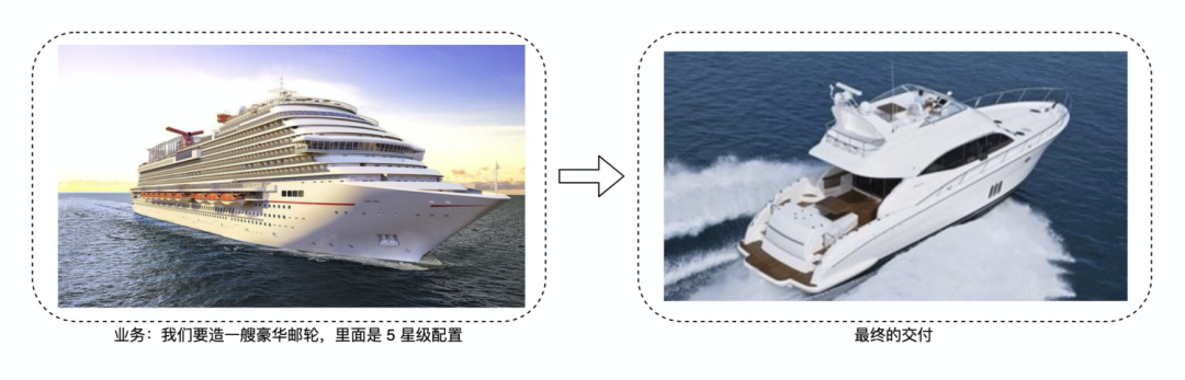我们常常遇到这样的问题:业务:我们要造一艘豪华邮轮,里面是 5 星级配置......最终的交付可能是一艘快艇。