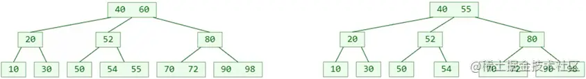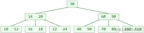 - 1 个节点可以存储超过 2 个元素、可以拥有超过 2 个子节点