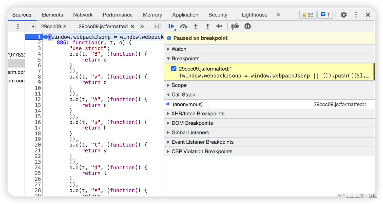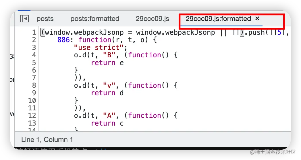 编译后的代码单行显示,毫无可读性,难以调试,需要进行格式化。