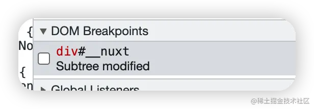 此时,sources选项卡下DOM breakpoints会显示当前断点。