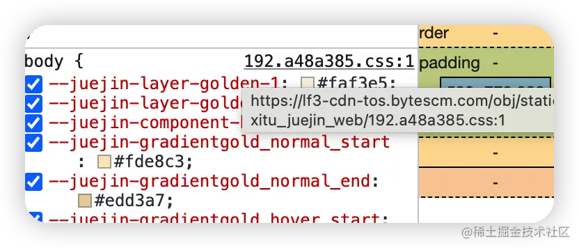 鼠标悬浮即可知道这段代码是哪个文件生效的