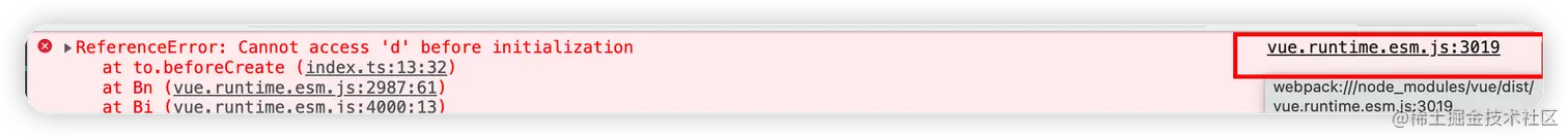 点击报错信息下面的调用栈也可以定位到调用代码的位置。