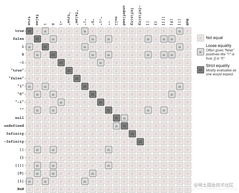 - Object == non-Object: 如果object/function/array与一个基本类型的数据作对比(string or number), 首先将对象转换成基本类型数据,会使用valueOf()或者toString()方法。