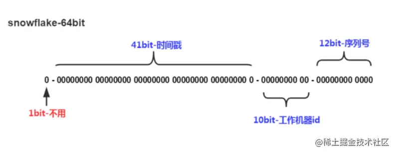 snowflake算法对于ID的位数是上图这样分配的: