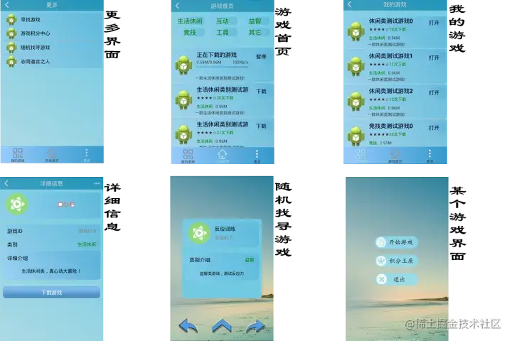 | 管理已有游戏 | 可以管理已经下载的游戏,包括打开,删除,评价,分享功能 | 选择已经下载的游戏进行管理操作 | 打开,删除,评价,分享功能都可用 | 正确完成 |